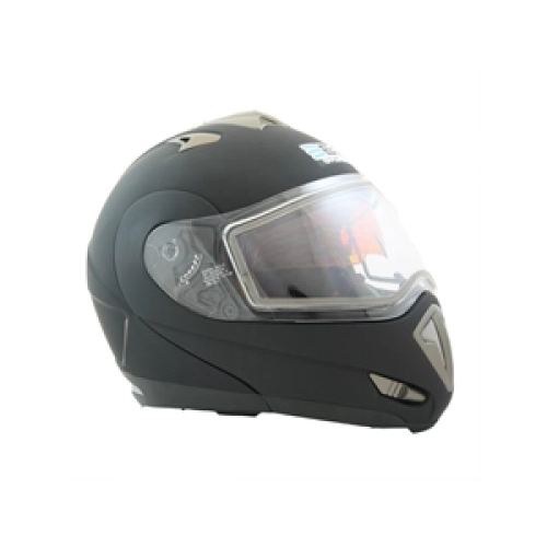Snøscooter-hjelm på sitt aller beste! Denne modular-hjelmen har ripebestandig dobbelt antidugg-visir og er tilgjengelig med elektrisk visir. Det følger med to visir i pakken, enkelt og dobbelt. Hjelmen er godkjent for veibruk med enkelt visir. Den har integrert pustemaske og det gule sol-visiret gir maksimal kontrast mot snøen.