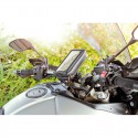 Front: phone holder compatible with devices up to 85x170mm transparent front film compatible with touch screen functions recharge cable entry hole.
