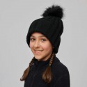 rysil strikket lue med imitert pelsdusk, god fleksibilietet og stretch. Designet for vinterens eventyr i by, mark og til fjells.